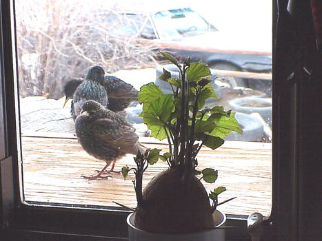 blackbirds, but way more mischievous and busy) came to my windowsill while