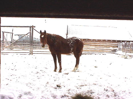 the corral today to give him a little extra care: grain, hay, and visiting.