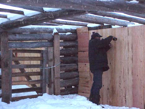 on the John Deere tractor, then cut out doors in the calving shed. One