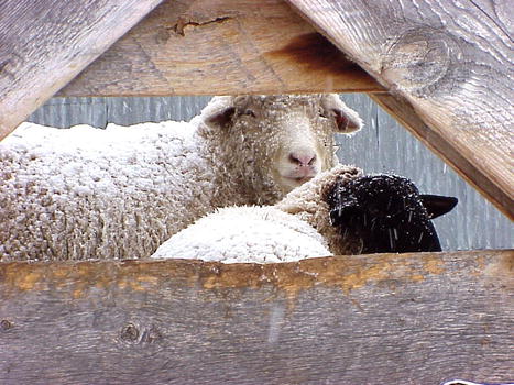 Eve, which In the meantime, we'll have to keep Todd in solitary confinement with only "the babysitter" until the Eve of his release. This babysitter's name is Clown, a "beefy" ten-year old pet wether (neutered buck). I named him Clown when he was just a few days old. He and his sister started out as triplets that needed my help getting into this world. But, by the time I could untangle their 12 toothpick legs and trace which one of the three tiny heads went with which set of legs, the third lamb didn't make it. The mom then got milk fever a day or so later and became critically ill. Many times when an animal gets sick right after labor, she'll bum or orphan her offspring. This was not the case with this ewe, however. She dearly loved those lambs. Even when she was so sick that I was certain she would die, she bleated weakly until I bedded them down beside her. Whenever I checked in on the little family, the little buck lamb would be lying right on top of his mom's back as if he was watching over her. He would see me coming and leap into the air, then bounce across the barn to greet me like he was riding a pogo stick. This always made me laugh even during the darkest hour, so I named him Clown. Clown's mom lived, but her milk dried up and most of her wool fell out in big chunks. I had already started supplementing her "kids" when she first got sick, and thereafter had to continue the feedings all summer long. The lambs technically were "bums," but they loved their mom and stayed with her except for twice-a-day bottles of milk from me... Today, I felt sorry for poor Clown, again. How sad he looked when I